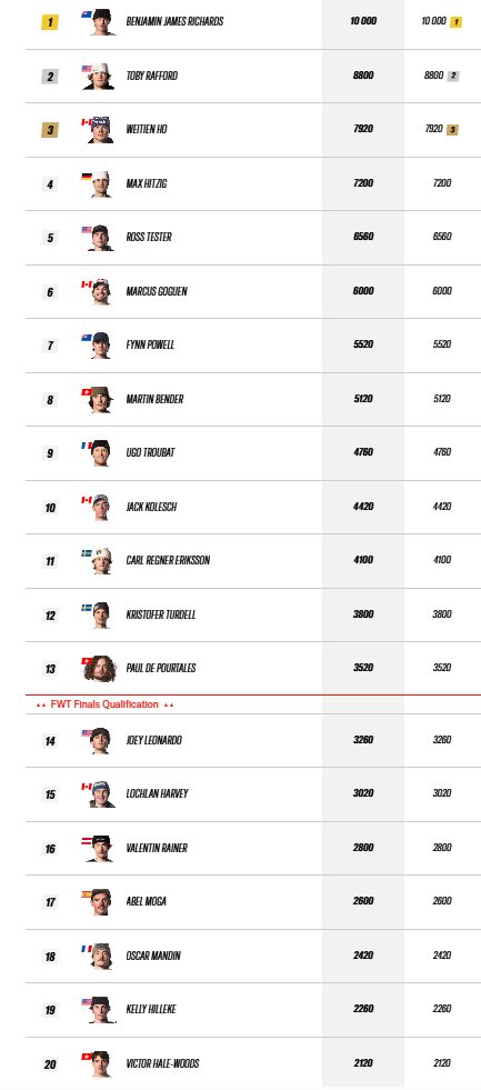 Svenskar till start. Inför årets säsong av FWT har vi två kända namn på touren: Kristofer Turdell, som gör sin 10:e säsong på FWT och numera ses som en av de mer seniora åkarna, tätt följd av Carl Regnér Eriksson som nu gör sin 9:e säsong på touren. Svenskarna gjorde en helt okej start på säsongen. Med två stabila och fina åk landade Regnér på en 11:e plats och Turdell på en 12:e. Ett tydligt tecken på att svenskarnas stabilitet och erfarenhet räcker långt – men inte hela vägen, då konkurrensen på touren har blivit stenhård. Därav ser vi alla fram emot en säsong där våra svenska åkare satsar järnet och bjuder upp till dans.