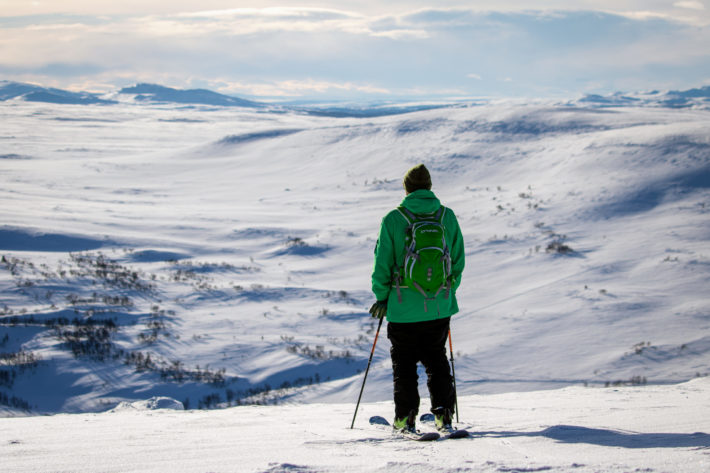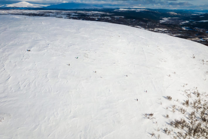 Det råder en viss förvirring. Vi står alltså just nu på en bergstopp som heter Stora Ramundberget, sedan ska vi till Lilla Ramundberget för att sedan ta oss tillbaka till… ja, Ramundberget. Alltså skidanlägggningen. Vi är ute på ett av vinterns största äventyr, långt bort från liftarnas susande, men lämnar aldrig Ramundberget. Typ. Lite snurrigt men fantastiskt härligt.