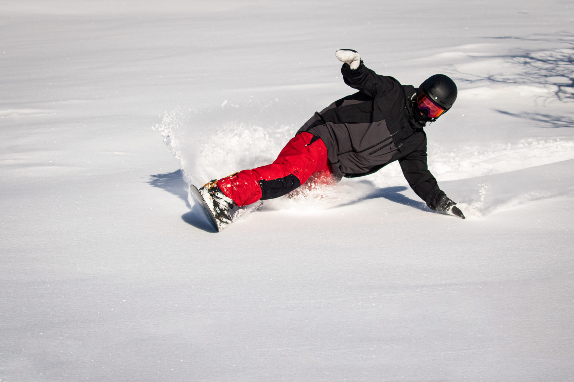 Sagt och gjort, vi repeterar proceduren igen. Men väljer att åka ned 50 meter längre bort så vi åter igen får njuta av ospårad snö. Det är minst lika härligt denna gång och med stora leenden under gogglarna så möter vi upp vår skoterchaufför (som inte är riktigt lika nöjd med sin tilldelade arbetsplats som oss andra). Sedan börjar vi ta oss tillbaka i takt med att solen sakta börjar dala.