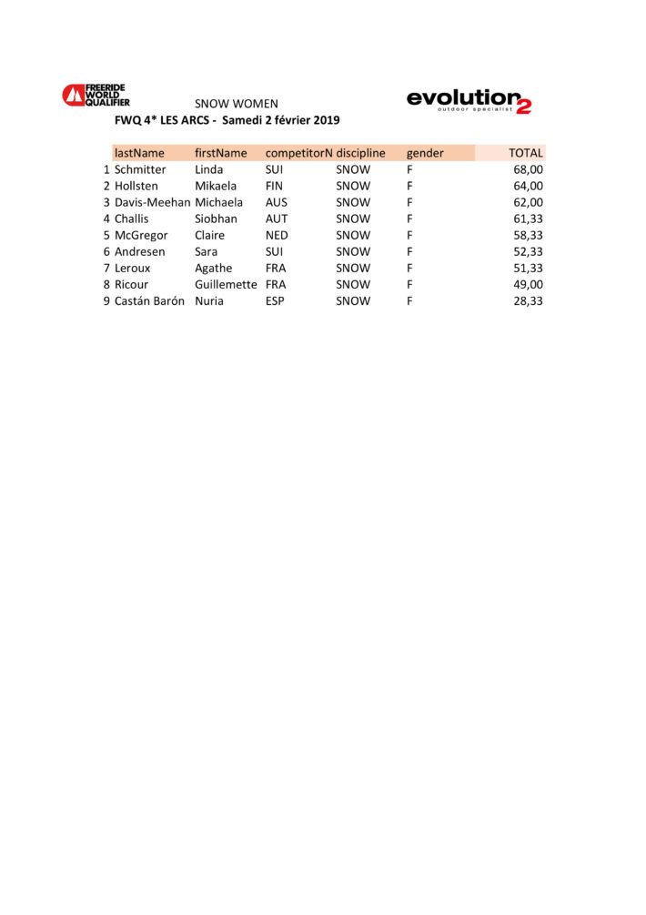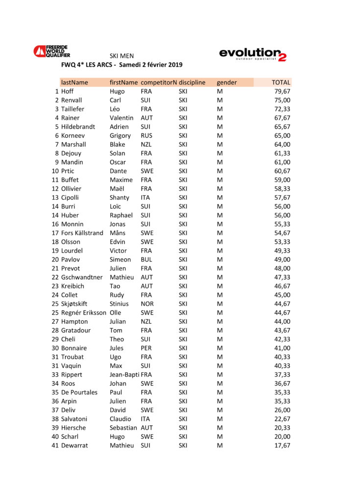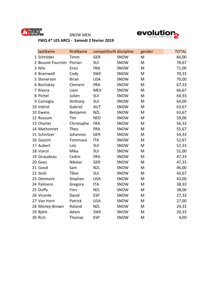 Freeride World Qualifier I Les Arcs 2019 är klappat och klart. Svenskarna har som vanligt laddat bajset på gott och ont. Ibland går det inte, men när det väl går så går det hela vägen hem! Det summerar Europas första fyrstjärniga tävling och agerar även startskott för de nästkommande högt rankade tävlingarna runtom i Alperna. Skribenten avslutar med att hälsa att han kan hyras in som konsult i migrationsfrågor.