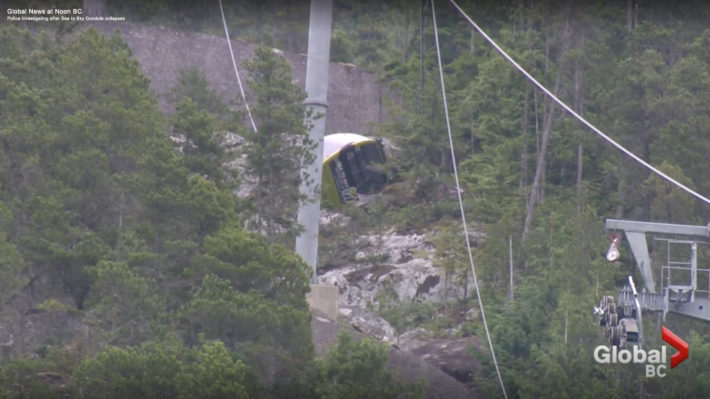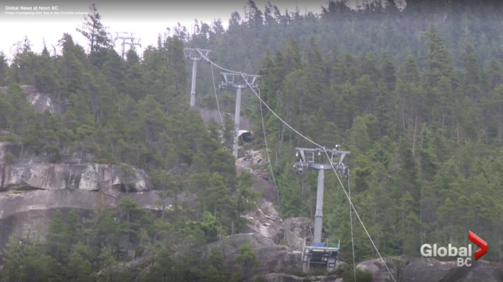 Under morgonen kring 07.00 (lokal tid) hittade personal till Sea to Sky Gondola vajer och gondoler på marken. Efter en första bedömning tillkallades RCMP (kanadensisk polis).