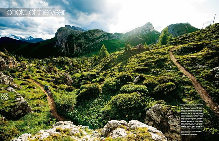 Ja, det här var riktigt roligt. Bilden togs vid Passo Falzarego, nära Cortina d´Ampezzo i Dolomiterna. Vi var på en plåtning i Dolomiterna under en dryg vecka och det var helt magiskt; fantastiskt väder, grymma stigar och god mat. Vi cyklade och plåtade faktiskt den här stigen flera gånger, första gången vi kom dit var det inte perfekt ljus och andra gången snöade det faktiskt. Från 25 plus till minusgrader, det var lite crazy. Nästa dag var det 25 plus igen och då visste vi exakt när vi skulle tillbaka. Tålamoden visade sig ge utdelning.
