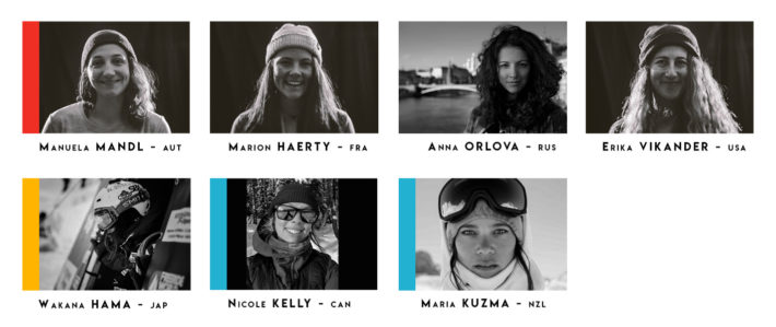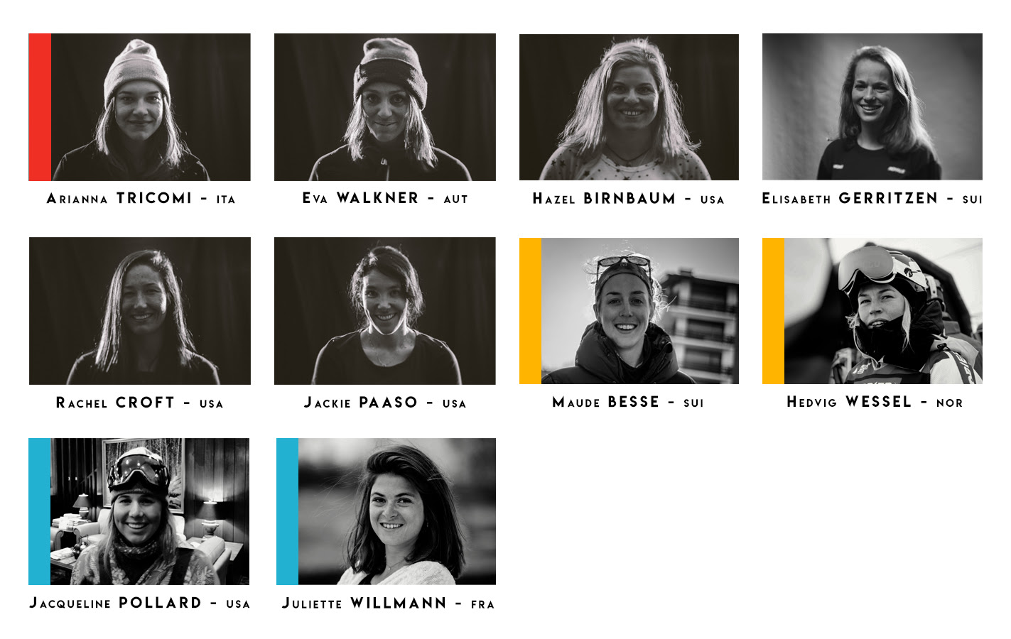 Italienska Arianna Tricomi kommer tillbaka till FWT19 för att försvara sin titel, medan hon fortsätter att flytta fram gränserna för kvinnliga freeriders. Hedvig Wessel (NOR) och Maude Besse (SUI) kommer att delta i turnén som säsongens jokrar med varsitt wildcard. Rookies som tagit sig den hårda kvaltoursvägen in är Juliette Willmann (FRA) och Jacqueline Pollard (USA). Jackie Paaso fick som bekant ett injury wild card till årets tour.