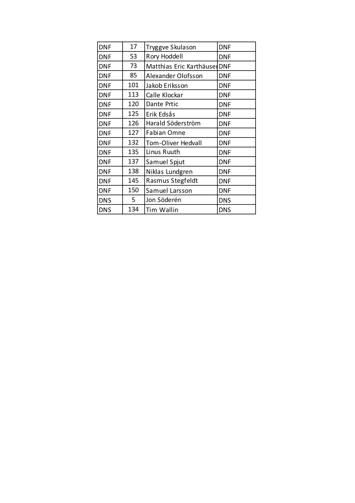 Startlistan på totalt 151 åkare i de olika klasserna började betas av vid halv elva och före siste åkaren Per Eriksson var i mål framåt eftermiddagen hade sex minst sagt händelserika timmar förflutit. Imorgon går finalen av NM 2018 och det blir antingen Insteget eller Ravinen, vilket bestäms av åkarrådet nu ikväll.