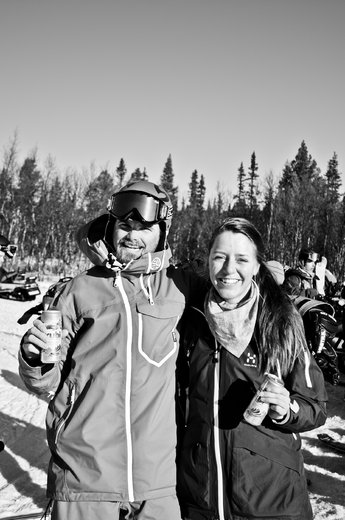 Det var en härlig blandning av folk hade anmält sig till tävlingen och det var allt från åkare som tävlar på internationellnivå till personer som skulle prova på sin första tävling. Det var ett glatt gäng på 25 personer samlades för att få skoterskjuts upp till Lill Skarven där det väntades ett fjäll i sin vita skrud, en massa snö och många olika linjaval att välja mellan. En liten skara publik hade tagit sig dit med skoter eller för andra som var mer hurtiga, tog sig en tur på sina turskidor upp till tävlingsområdet. Publiken som hade grävt sig solgropar fick se en hel dag med en massa dropp, krascher och spexande.