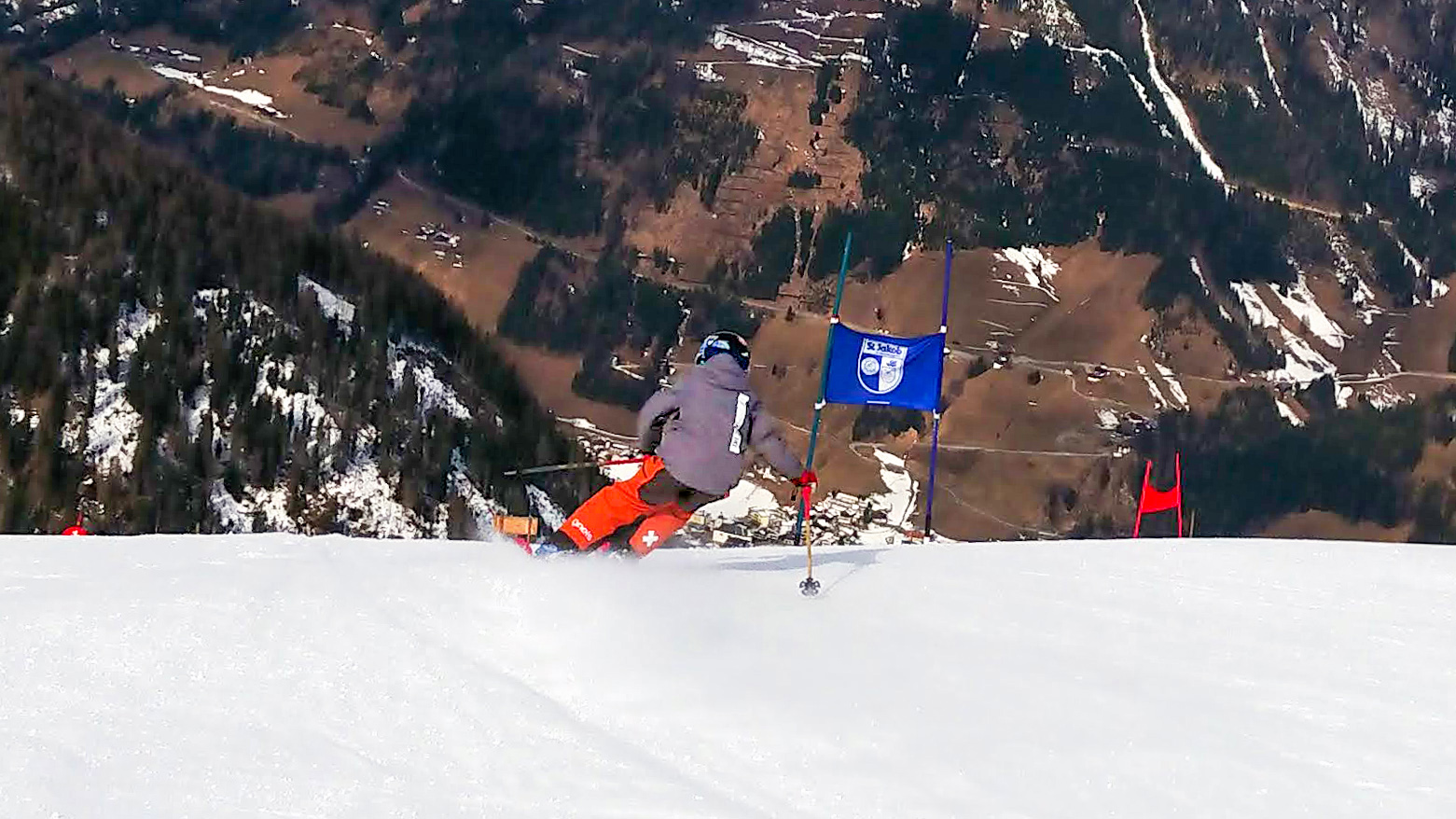 Vi trycker ifrån med stålkanterna och carvar i paragrafer, stora och små efter vad pisten dikterar. Fartvinden tjuter i hjälmen i första branten. Vi sväljer krönen ett efter ett och tar luft över det sista. Här uppe håller sig pisterna hyfsat hårda även mot slutet av dagen. Innan vi lämnar Goldriedsee bakom oss kryper vi ihop hocke för att samla fart inför transporten över till Landenplatån där det flackar ut rejält.