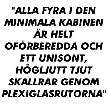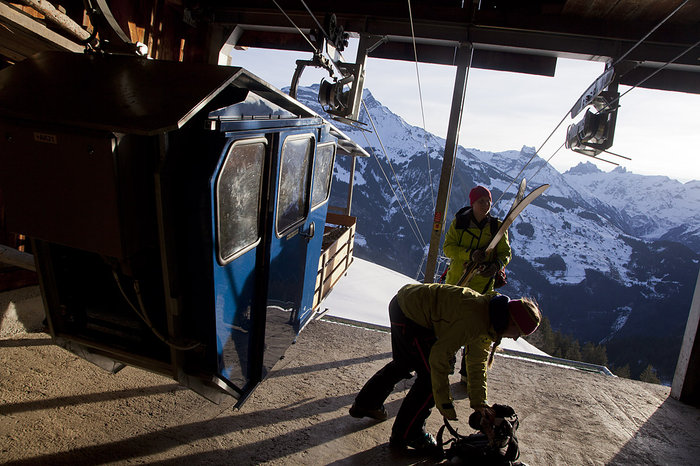 Toya Keller ringer på bondfrun och ber henne starta liften.Den blåa kabinen tar höjd snabbt. Fyra personer, två och två mittemot varandra på varsin liten bänk, får plats i liften och det är knappt ens det, ännu trängre blir det med skidryggsäckar och pjäxor. Kabinen seglar upp mot den första liftstolpen som står på klipphyllan runt trehundra höjdmeter ovanför.