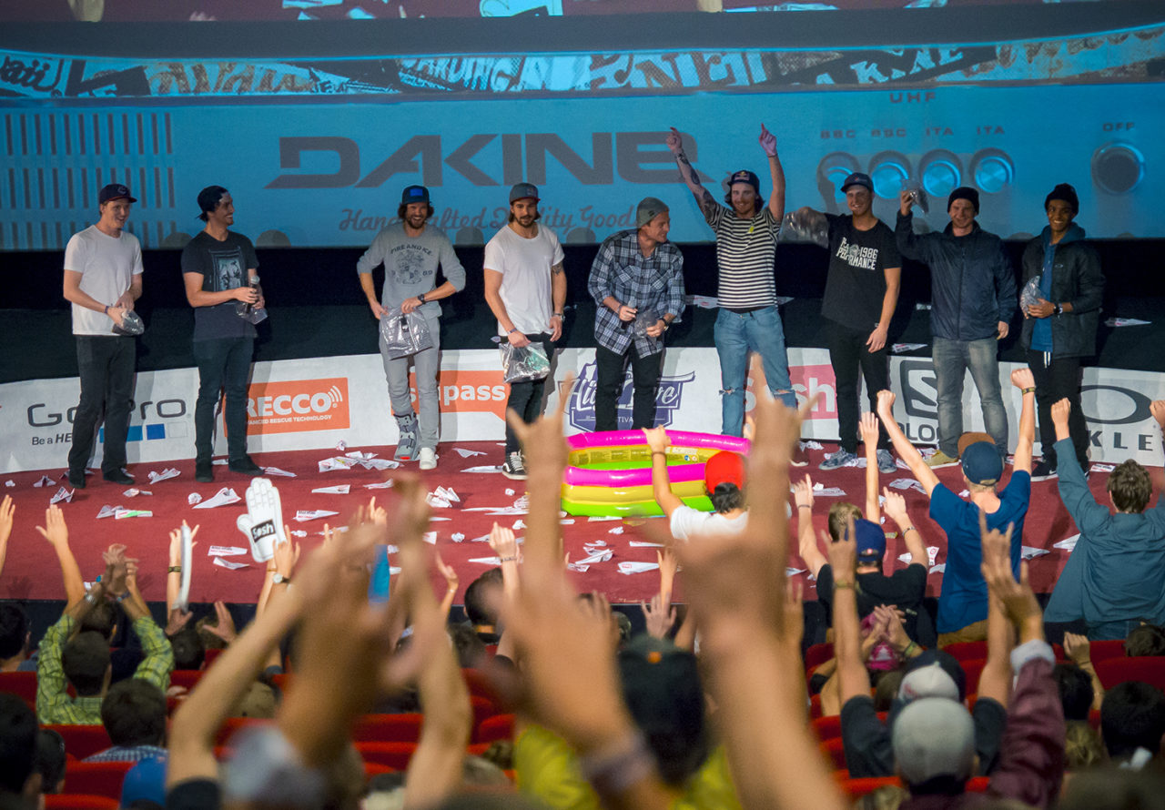 Festivalen är mer än skidfilm. Diskussioner, branschträffar och framförallt fester avlöser varandra tätt. Det märktes under Kye Petersen filmvisning. Filmen i sig är underhållande och innehåller nog årets brantaste åk. Men det som höll humöret uppe för oss i galleriet bakom biostolarna var den duktigt berusade duon Parker White och Chris Logan. De båda hade tydligen intagit en flytande middag på någon fest. Det gav oss två högljudda amerikaner som oupphörligen roade oss alla med sina hejarop när vännernas filmer rullade. Mycket beröm delas ut och i vissa fall överröstar de en hel biograf.
