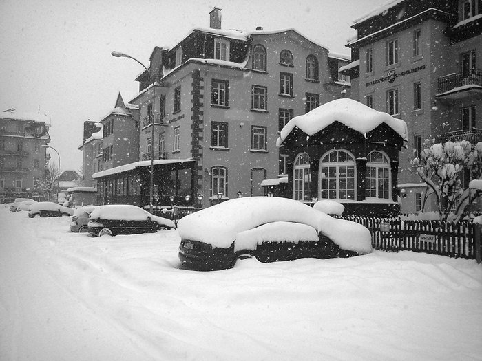 Ski Lodge Engelberg en snöig novemberdag i väntat på de första gästerna