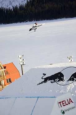 Ingemar Backman gör en 8,5 meter hög backside air i Riksgränsen