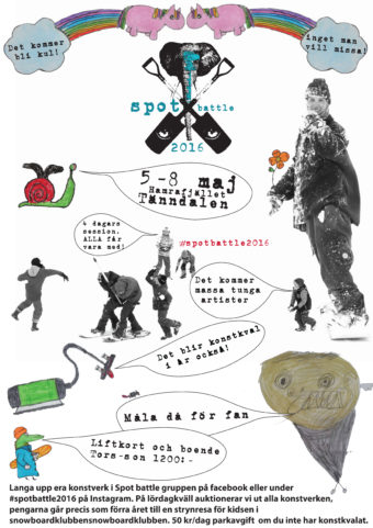 I år kan du även kvala in med ett konstverk. Se informationen i postern till höger. Alla verk kommer att auktioneras ut och pengarna går till en Strynresa för den lokala snowboardklubben.