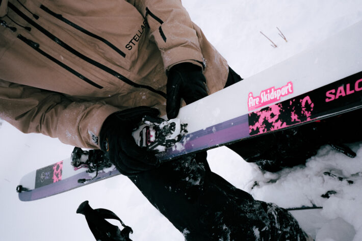 Nya Salomon QST X är alltså en puderorienterad skida. Lätt för sin storlek, 116 mm under foten, rejält rolig rockerprofil och ett belag som får en att tänka på tie dye med en liten logo som liknar peace-märket. Redan nu finns den i utvalda butiker och näthandlare, till hösten och nästa vinter kommer den i ordinarie sortiment.