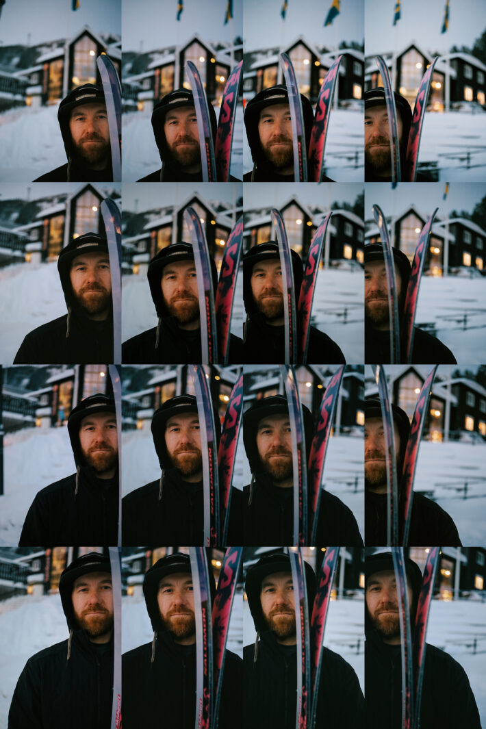 – David är alltid på väg någonstans. Otroligt att han orkar hålla engagemanget uppe efter alla år. Han är alltid taggad när det kommer nya skidor, delvis kanske för att hans gamla alltid är väääldigt använda. David dräller in i vår verkstad på Åre Skidsport och då är det go stämning och full cirkus direkt, säger Chrille på Åre Skidsport.