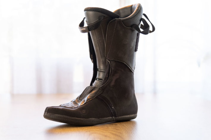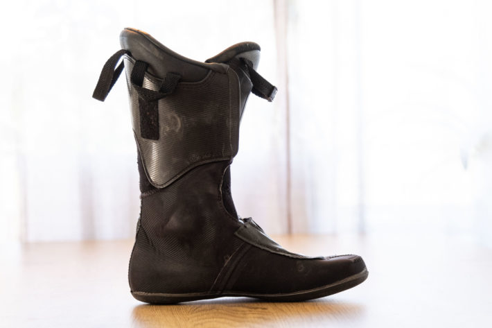 Nog om detta, låt oss kika in innerskorna i lite mer detalj för att se hur de klarat av dessa skiddagar i vinter. När man plockar upp dessa känner man de är ett par ”riktiga” innerskor. Med det menar jag att de känns otroligt mycket stabilare än de enklare lätta innerskorna som man normalt hittar i toppturspjäxor. Materialvalen, stoppningen och konstruktionen i helhet utstrålar varaktighet även efter hela denna säsong. Visst syns de att de är använda men i det stora hela känns de lika som de gjorde i oktober.