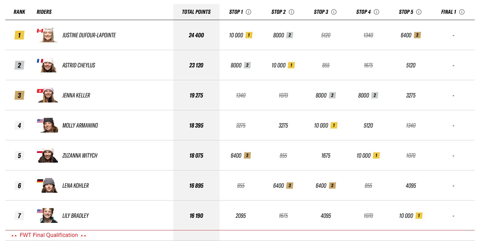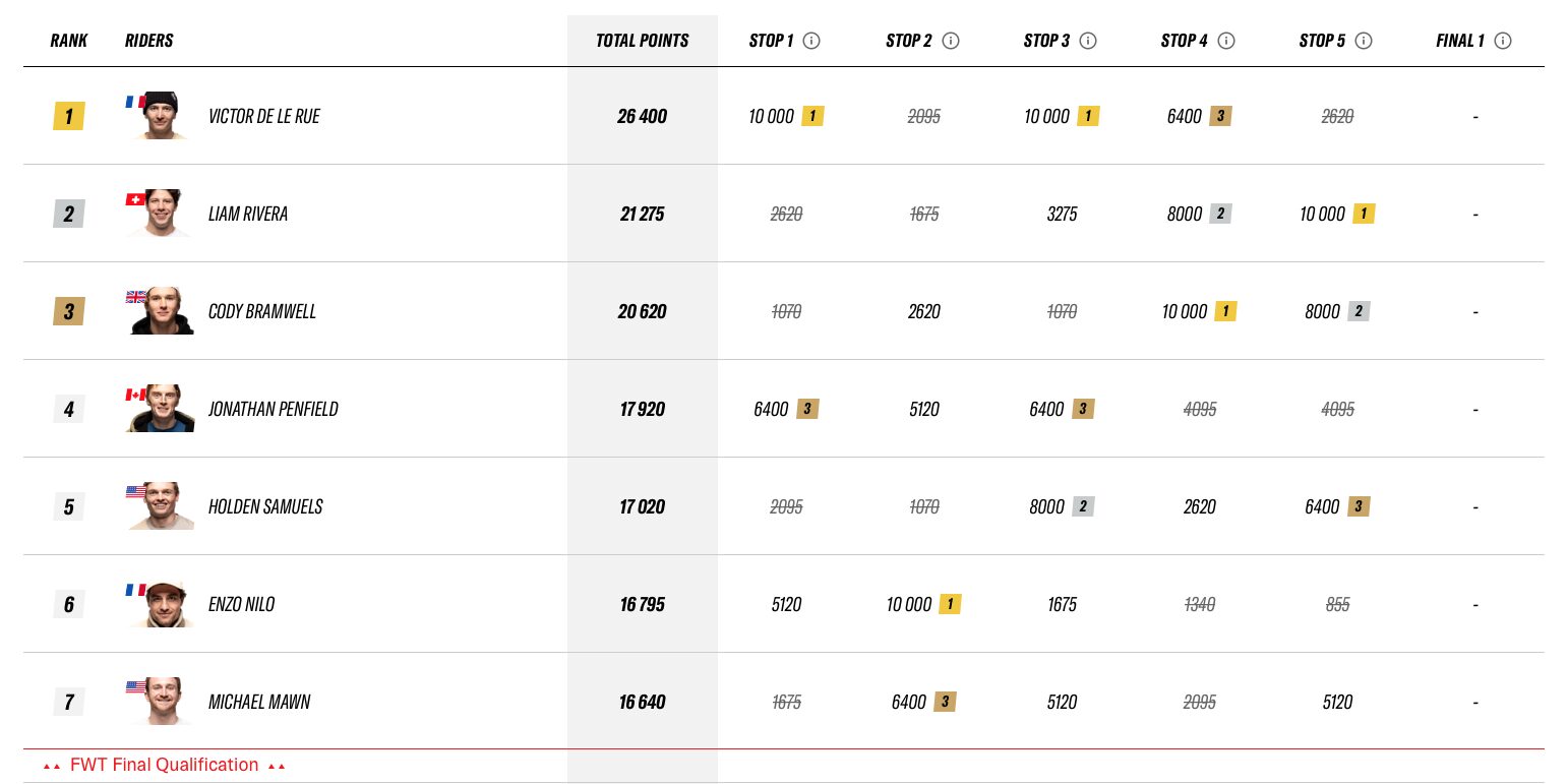Nu står det klart vilka åkare som tagit sig till final i Freeride World Tour – efter en inställd sista kvaltävling.