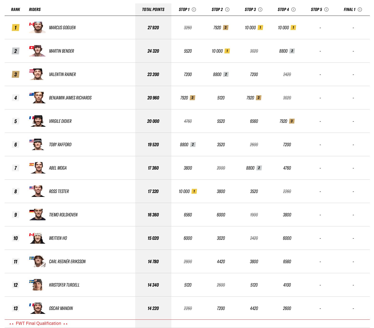 Därmed vet vi nu med säkerhet hur rankingen ser ut och vilka åkare som har tagit sig till final i Verbier på det klassiska facet Bec des Rosses. Glädjande nog så står både Kristofer Turdell och Carl Regnér i final. Väderfönstret för finalen är mellan 22-30 mars.