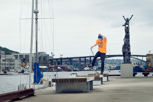 Jag vill ge två tips till nybörjaren inom foto. Jag tror de flesta aspirerande fotograferna är sugna på att fotografera någon form av actionsport. För att få bra bilder gäller det att samarbeta med åkarna. Det är ni tillsammans som skapar en bra bild, inte bara den som står bakom kameran. Det andra tipset är att lägga stor vikt till att fotografera åkaren i rätt omgivning. En tailwhip ser sjukt mycket snyggare ut om den görs framför en varm solnedgång än under starkt solljus klockan 14.00 på eftermiddagen. Jag tycker mest om att fotografera i mulet väder där skuggorna inte blir lika hårda. Detsamma gäller för vilken plats man fotograferar på. Tänk kreativt och dra er inte för att experimentera lite istället för att cykla ner till den lokala skateparken.