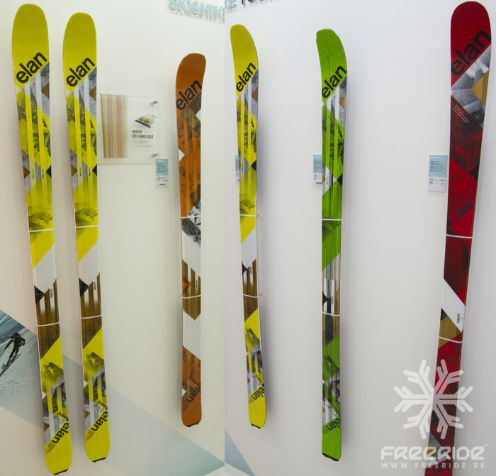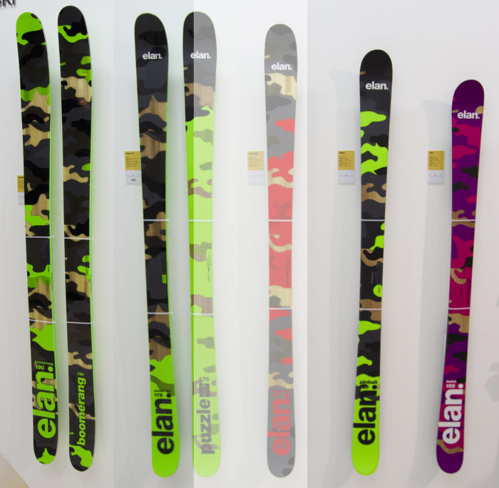 Klassiska Elan ångar vidare med sin amfibie-rocker, det vill säga rocker på utsidan av skidorna med inte på insidan (något som gör det här med höger- och vänsterskida till mer än en estetisk detalj. På parklaggen är det fortfarande triple base technology som gäller, i år i kombination med kamouflagemönster.