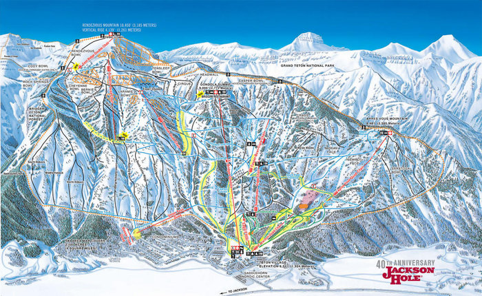 En annan stor skillnad mot Alperna är hur själva skidsystemet ligger. I Alperna sträcker sig systemen ofta över dalgång efter dalgång och täcker upp gigantiska områden med berg. Här ligger samtliga liftar koncentrerade på samma sida av två intilliggande toppar, Apres Vous och Rendezvous Mountain. Detta gör att man efter i princip alla åk måste ta sig tillbaka till samma ställe, det vill säga dalstationen av Bridger Gondola. Detta innebär i sin tur förfärligt långa traverser runt halva delstaten efter några av de finaste åken. Jobbigt tycker stackarna på snowboard och råder därför de som har möjligheten att stå i valet och kvalet mellan att ta med sig brädan eller skidorna att välja det sistnämnda. Eller; kom på någon snabb och smidig variant av splitboard med en bra lösning till bindningar och håva samtidigt in det första nobelpriset i puderåtkomst!