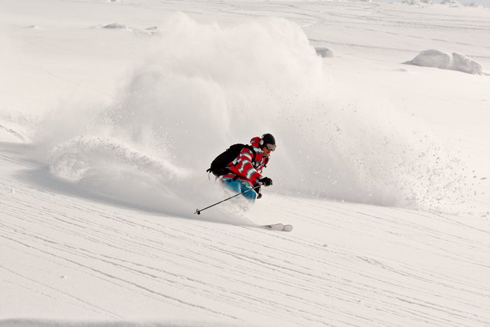 Detta var dock bara början. För att sammanfatta våra fyra första dagar: 70 centimeter första natten, 50 centimeter andra natten, 45 centimeter tredje natten. Fjärde dagen var det uppehåll och solen tittade fram lite lätt. Ja vad ska man säga? Vi fick alltså redan första åkdagen uppleva den djupaste åkningen någonsin i våra liv, många beskrivningar har gjorts då det gäller djup puder åkning, och vi kan bara säga att det var magiskt! Vi frågade oss själva vart vi egentligen hade kommit?! Detta är ju bara helt sjukt!