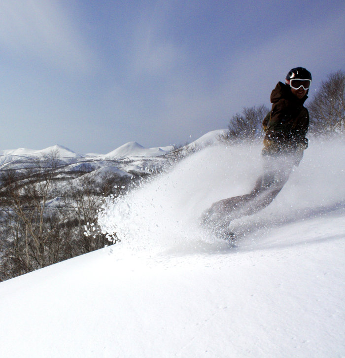 Sista dagen i Niseko och jag, skibummen Steve från USA och fem år i japanska Bevan klättrar upp för Hirafutoppen. Vi skråar ut till en av peakarna och droppar in i smörmjuk ”Årepåsksnö”, orört och inte en enda freerider på berget. Solen skiner och humöret är på topp. Efter bowlen åker vi igenom skog för att komma ner till transporten till Moiowa – ett skidområde bredvid Niseko som just nu ägs av ett israeliskt företag. Under de senaste fyra åren har de haft fyra olika ägare – att tjäna pengar i Moiowa är omöjligt! Det finns två liftar och massa offpist så många locals bor här och under puderdagar har dom hela berget för sig själva… Vi pumpar puder i Moiowa 4-5 gånger och slänger sedan in handuken; en perfekt dag med variation, bra snö och sol – dags för öl.