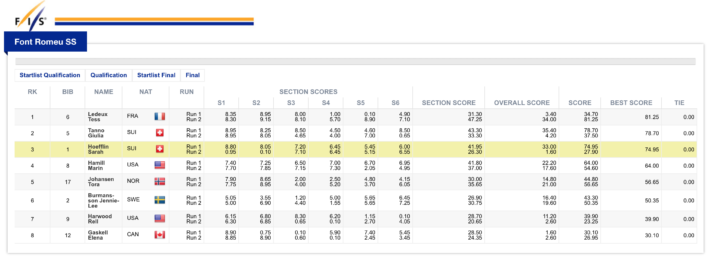 3. Sarah HOEFFLIN, Schweiz, 74.95