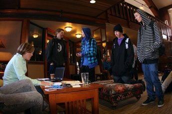![]() Utdelning av boende, matkort och liftkort Foto: Jenny Naftulin |