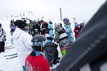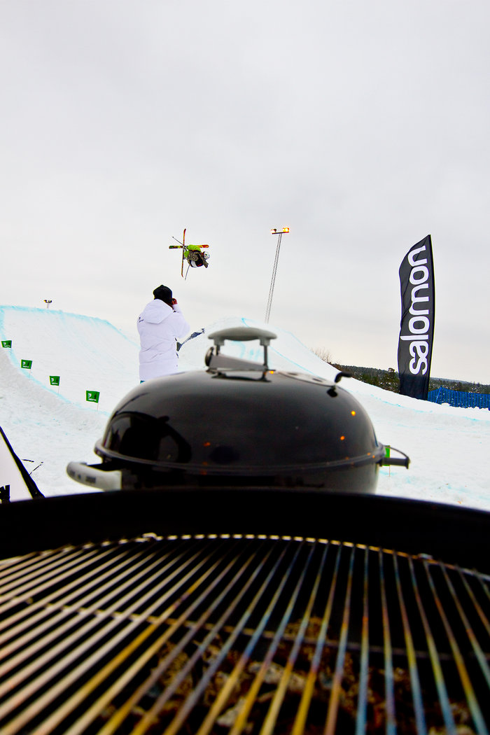När åkarna började bli varma i kläderna körde man igång en omgång Följa John för att sen gå över i hoppen i lite friare former. Coacherna, även domare under Salomon Jib Academy, gav beröm och tips. När klockan närmade sig middag tändes grillarna och det bjöds på hamburgare. Även om det var lunch så fortsatte skidsnacket och när man gled igenom klungan av åkare diskuterades olika trick livligt.
