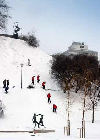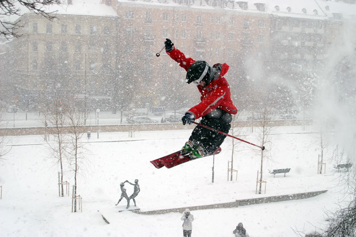 Längs Sveavägen stannade stockholmare på lördagspromenad upp för att beskåda dessa galningar. ”Åka skidor i Stockholm, och hoppa dessutom?” Barnen jublade av glädje när någon satte ett hopp, småbarnsföräldrarna suckade djupt när de såg krascherna. Man kunde verkligen ana deras fasa över vad deras barn skulle ta sig till när de växte upp. Det var inte bara de förbipasserande japanska turisterna som passade på att fota, även kameramobiler plockades upp när det vankades hopp.