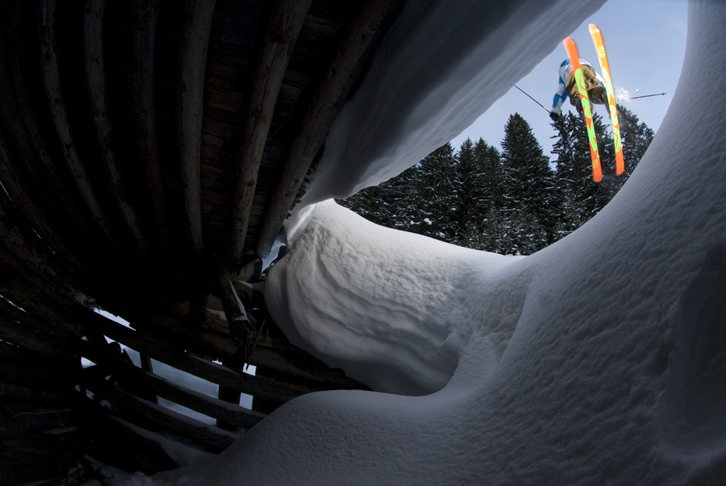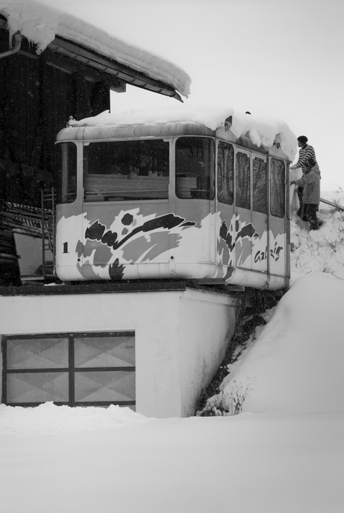 Ännu en dag med bra bilder att fylla upp årets portfolio med. Vi lämnar St Christoph och beger oss hem mot Pettneu. På vägen hem åker vi förbi ett äldre trähus med en liftkabin placerad uppe på en garageinfart. Vi stannar till och upptäcker snabbt att detta är möjligt att filma. En kick och landning är allt som behövs. Men detta får bli morgondagens projekt. Som fotograf men även skidåkare är det viktigt att ha alla sinnen öppna och ständigt söka efter nya platser att filma på.