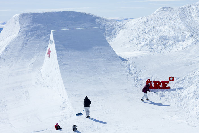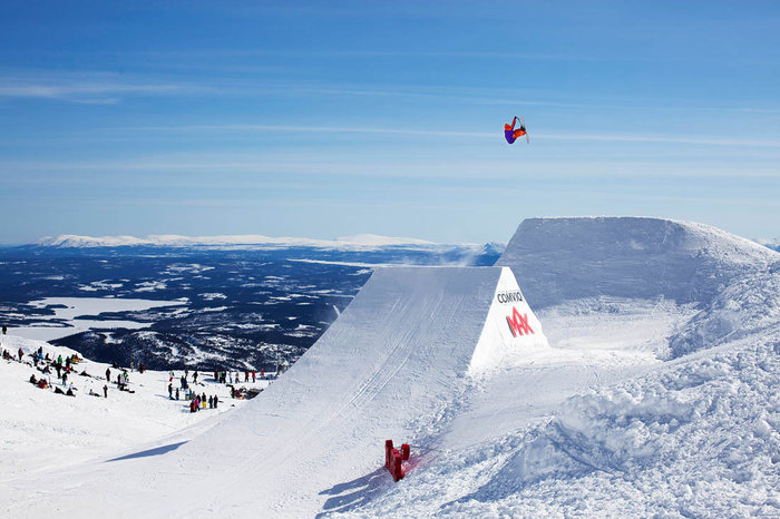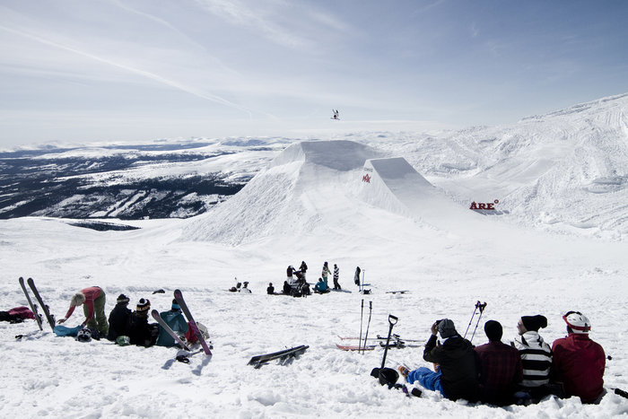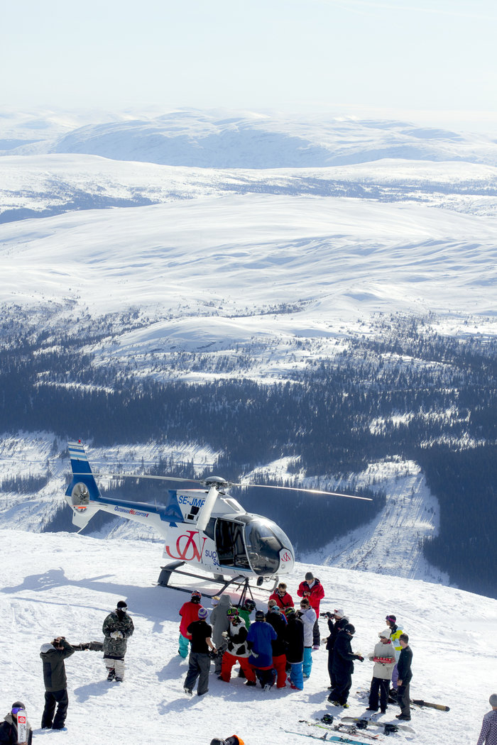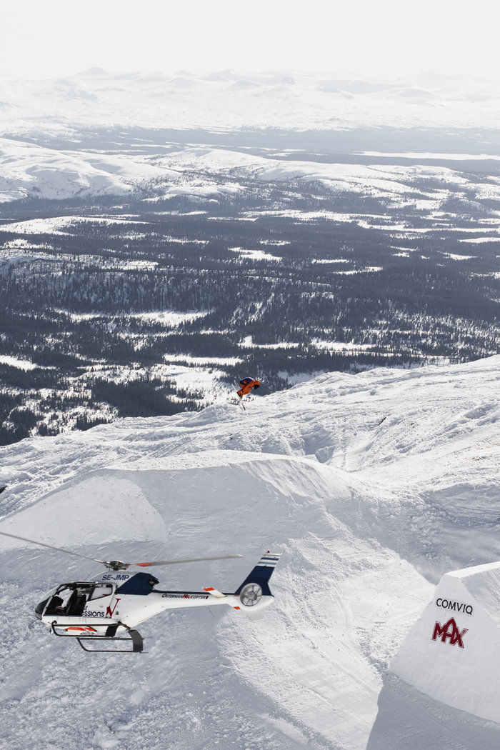 Team Sweden begärde luftassistans och snabbt var helikoptern i luften med filmaren Andreas Olofsson filmades halvt hängande ut från helin med kameran i högsta hugg. Oscar Scherlins lååååånga, stora hopp och tweakade grabar blandades med Henrik Harlaut och Niklas Erikssons vansinnigt snygga stil. Henkes inverterade doublecork 1260 blunt gav nästan tårar i ögonen på publiken.