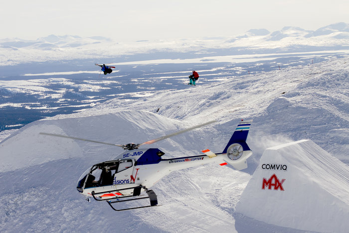 Dubblar åt alla fyra hållen; höger, vänster, switch höger och switch vänster. Tweakade grabar, en hårt arbetande helikopter och åkare av världsklass. Gårdagens soliga session uppe i Solravinen bjöd på allt vad kameramän och publik kunde önska sig.