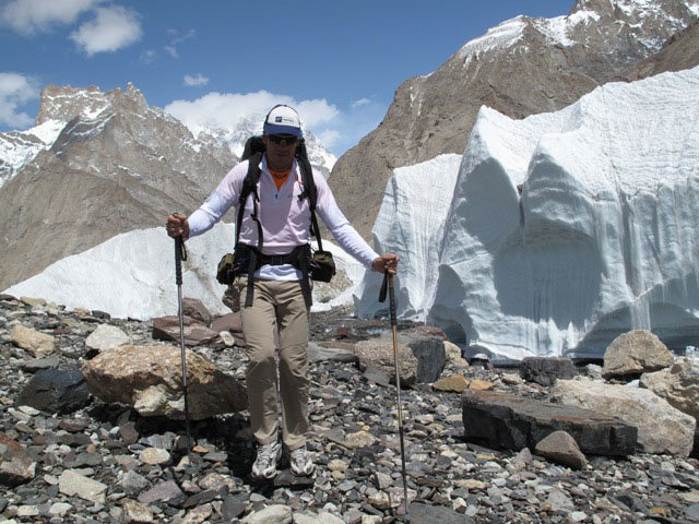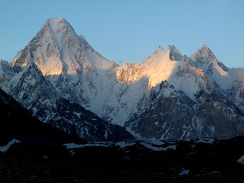 Ju högre upp i dalen vi kom desto finare blev utsikten. Vi vandrade förbi en hel bunt med fina berg som tex. Trango Towers, Mustagh Tower och Masherbrum. Det fick till och med mig att sluta gnälla om ont i fötterna. Upplevelsen kulminerade när vi kom till Concordia, mötesplatsen för några av Karakurums största glaciärer. Sittandes i tältet på Concordia ser man några av världens finaste berg: Mitre Peak, Gasherbrum 4, Broad Peak och K2. Är man där, som vi var, i början av juni när det nästan är folktomt är det en helt magisk plats.