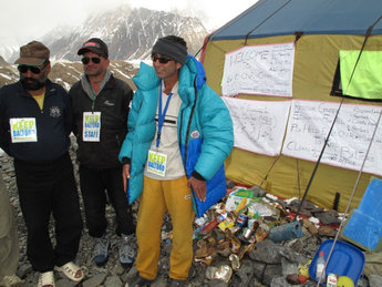 Från Concordia hade vi en fem timmars marsch uppför Godwin Austen glaciären till K2s basläger, inklusive en fika med två Österrikiska klättrare i Broad Peaks basläger. Bara som lite extra underhållning fick vi, med en kopp te i handen, se en fransman komma flygande med paraglider ned från högt uppe på Broad Peak. Helt ok fikapaus.