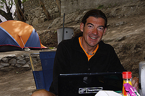Ibland blir inte vissa dagar som man har tänkt sig. Den 23 Juni, 2009 var just en sådan dag. Vi var på vår andra acklimatiseringstur på K2. Denna gången kände Michele och jag oss bättre än under vår första tur och ingen huvudvärk. Efter att ha spenderat två nätter i vårt Camp 2 på 6350 meter var vi på väg ner till Base Camp på skidor. Vi hade redan passerat den branta och steniga passagen, som jag trodde var den svåraste biten av nedfarten, och var ute i en stor öppen bit av berget. Det var fortfarande väldigt brant och vi åkte väldigt sakta med kontrollerade hoppsvängar.