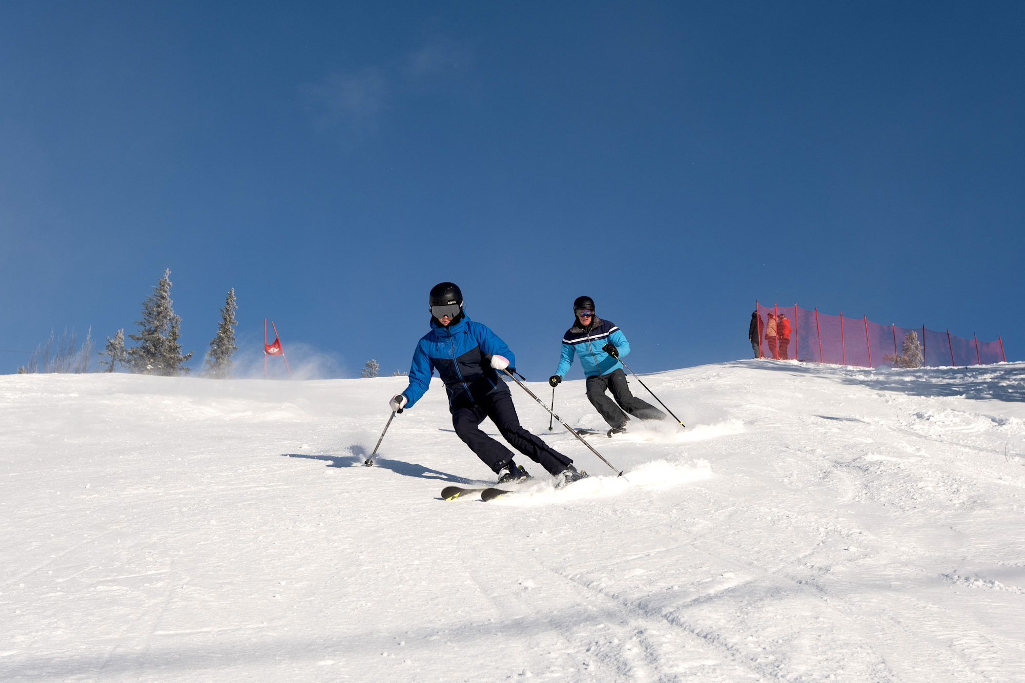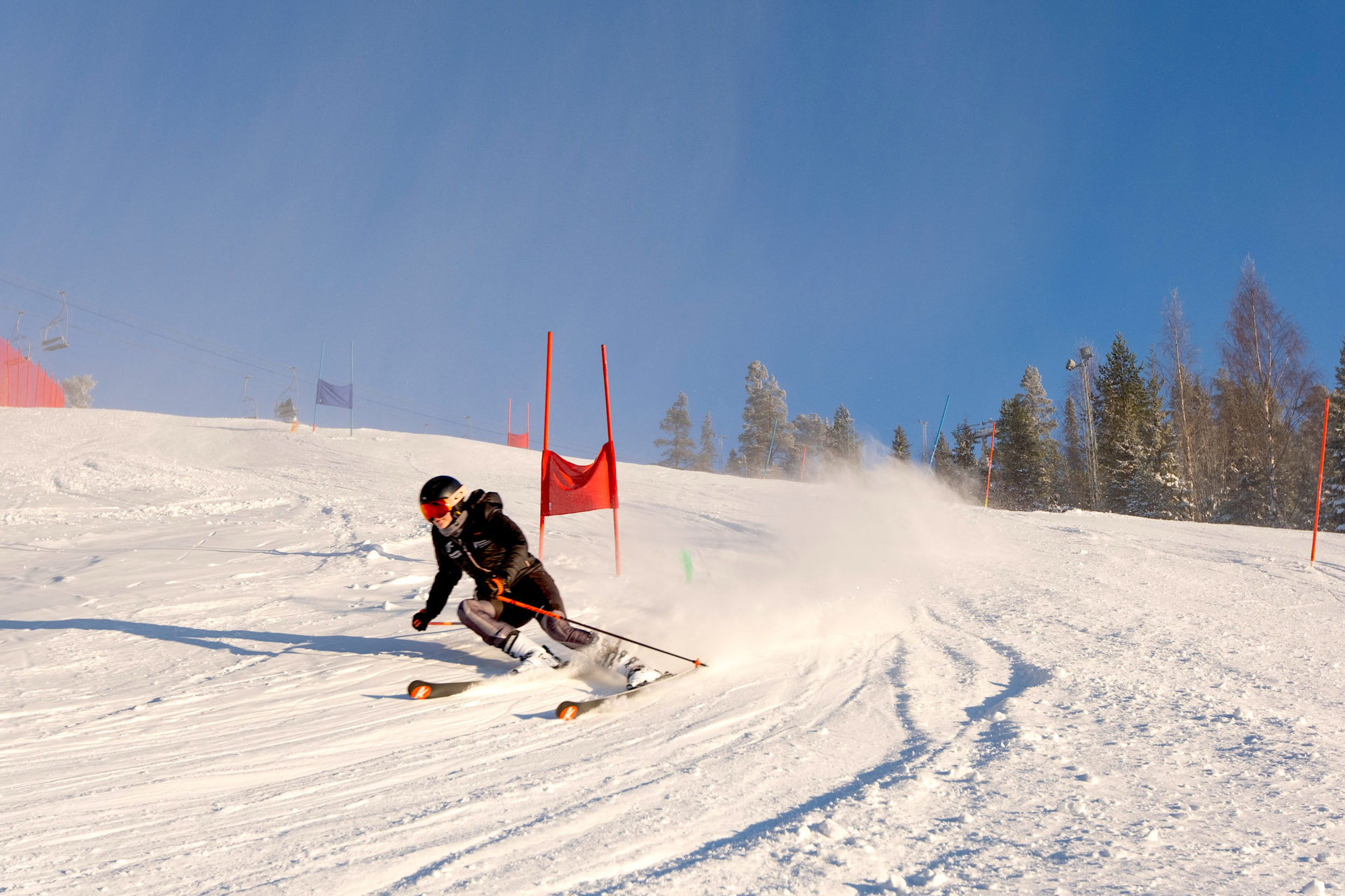 Detta året kom dock att bli lite annorlunda då vädret slog om till riktig vinter bara några dagar innan öppning och vi kom upp till ett landskap som var i fullt vinterläge. Träden hängde med snötyngda grenar, isen på de omkringliggande sjöarna hade börjat lägga sig och runt om i skogen låg det 15-20 cm av magiskt puder. Detta förändrar inte det faktum att man endast kan åka i en pist där alpinåkarna tagit upp en majoritet av backen med käppar, men det inger en känsla som annars inte infinner sig. Vintern är här på riktigt.