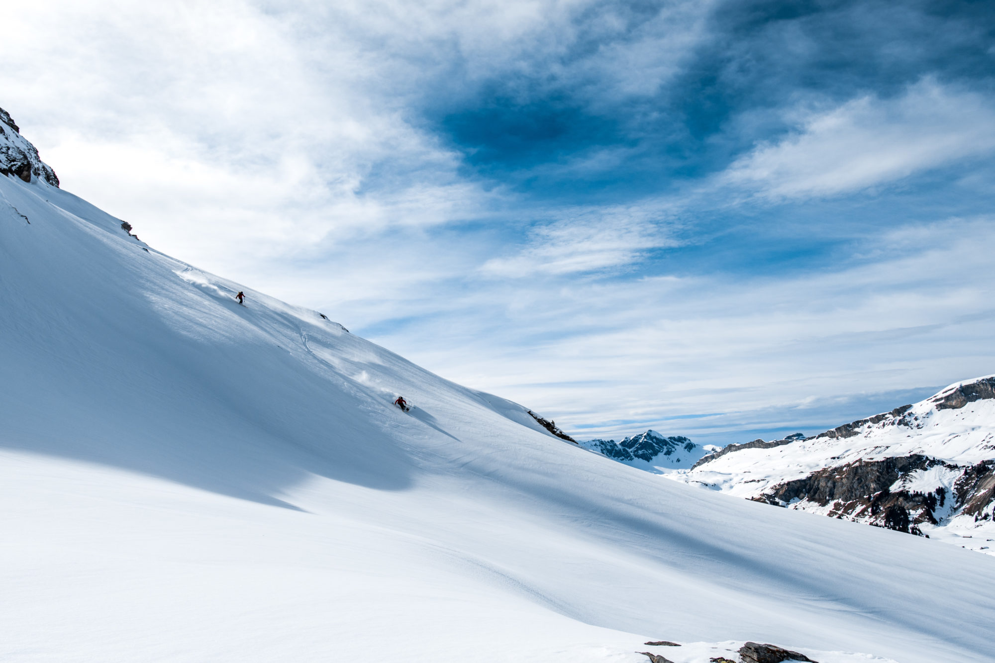 – Jag gjorde min första säsong i Engelberg, det var faktiskt skälet till att vi åkte dit, jag ville visa Malou vad det var alla pratade om och vad hypen kring berget innebar. Jag är ju patriotisk, men jag älskar enkelheten att ta sig ut i stora åk, stor kul terräng med möjligheter att droppa klippor lite överallt. Sen finns det ju inte skogsåkning så det är ett litet minus i kanten, men overall tycker jag Engelberg förtjänar sitt rykte.