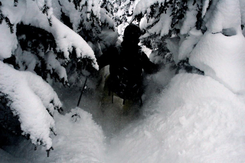 Det är ett lyckorus som sprider sig i kroppen när vägen börjar gå uppför. Snön ligger kvar på träden. Det har snöat varje dag sedan vi kom till Kanada på nyårsafton. Och det snöar fortfarande. Avalanche Bulletin: “An additional 15 cm of new snow accumulated at treeline so far. This is the fourth system to bring heavy snowfall and 175 cm of storm snow has fallen since New Year’s Day. A further 20 to 30 cm is possible through tonight.”