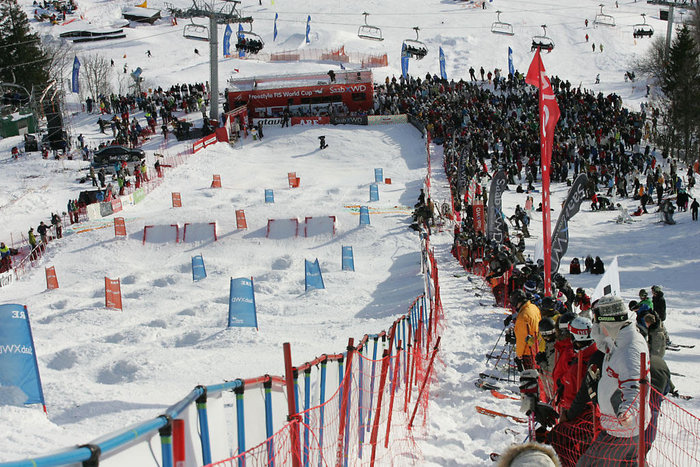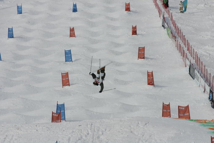 Det var en mycket lycklig kazakstans kille som fick kliva upp överst på pallen i Åre. Världscupledaren Dale Begg-Smith såg ut att ha segern i den berömda lilla asken men kom fel i landningen i sista hoppet och kraschade in över mållinjen.