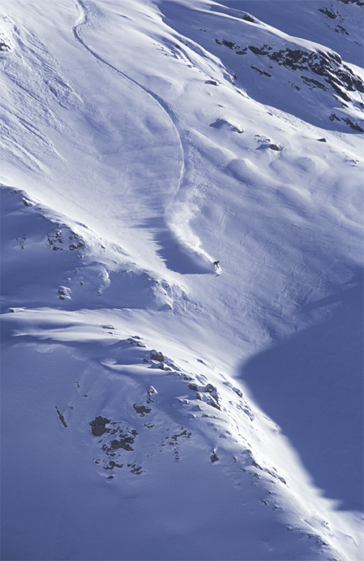 – Jag försöker dra på där det tillåter och däremellan får man försöka dansa fram. Sedan får man försöka lura berget lite här och var genom att droppa någon klippa också. Det är surfkänslan man vill åt.