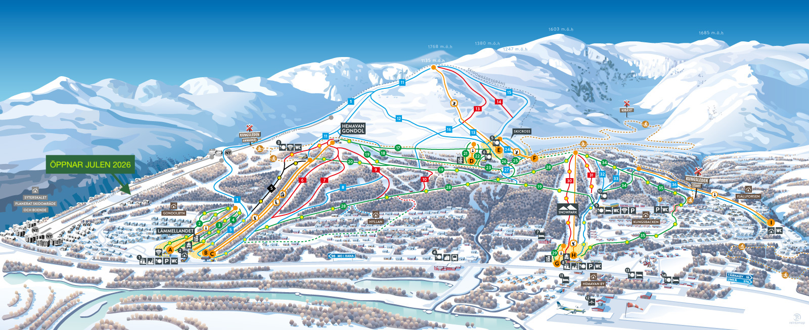 - Leder för längdåkning, fjällvandring och cykel, ansluts till Kungsledens ledsystem