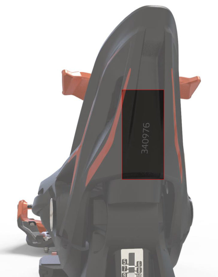 Det enklaste sättet att kika om du är drabbat eller ej är utifrån serienumret av din bindning. På bakbindningen, häldelen, ser du serienumret (se bild). Om din binding är i intervallen så ska du byta ut bindningen, intervallet för Kingpin 10 är 337804 – 418632 och för Kingpin 13 är intervallet 337798 – 411728.