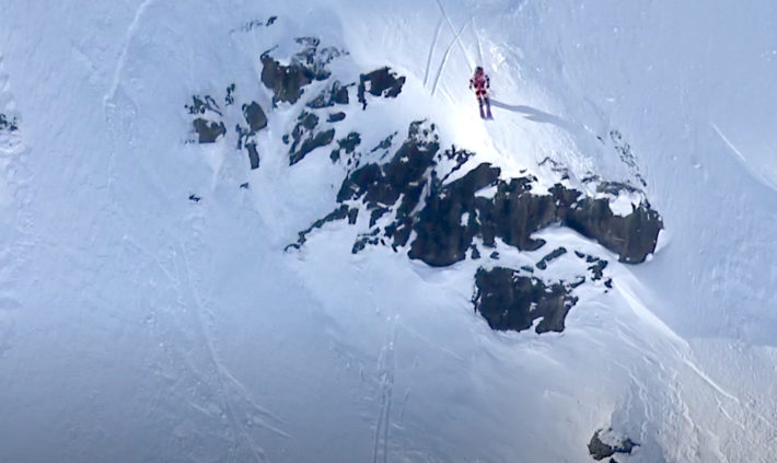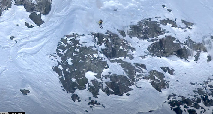 Reine Barkered valde samma linje som spanska galningen Aymar Navarro ställt ner. Han gick skiers right direkt och droppade sedan två massiva klippväggar där mellanrummet tidsmässigt var ungefär lika långt som mellan crescendo-noterna i Kirk Hammets solo på Enter Sandman, Metallica. Fruktansvärt imponerande storbergsåkning. Ett åk som då kändes som ett vinnaråk, men så blev det icke.