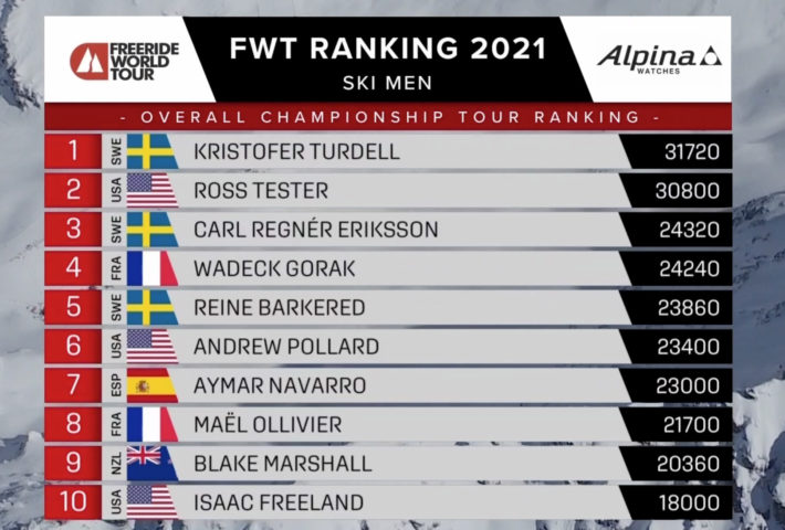 Dagens bästa svenska prestation stod Kristofer Turdell för. 31-åringen från Gällivare åker sin 6:e säsong på Freeride World Tour och detta blir hans andra totalseger. Turdell gick rakt ner i fallinjen från starten, valde en liknande linje som Carl Regnér, plockade några rena och snygga små flygturer i toppsektionen.