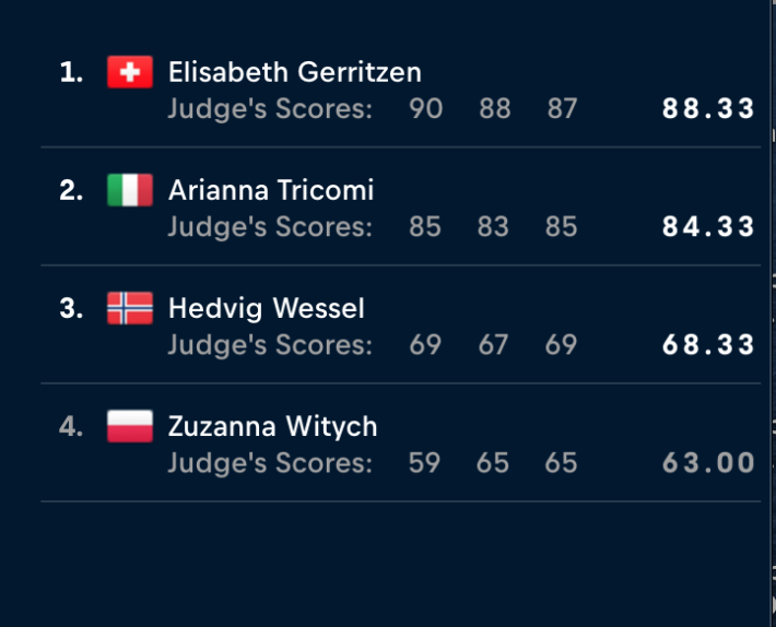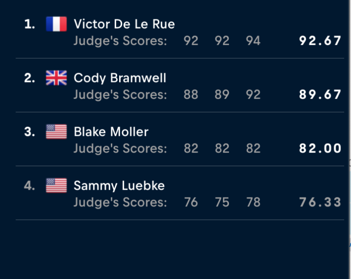 Ingen rådde på Victor De Le Rue idag, som tagit sin friåkning till nästa nivå, stora drops, 360 och solid åkning renderade honom vinsten. Victor vann Verbier och även totalen. Hans andra världsmästartitel, även 2019 vann han och förra året var han tvåa totalt.