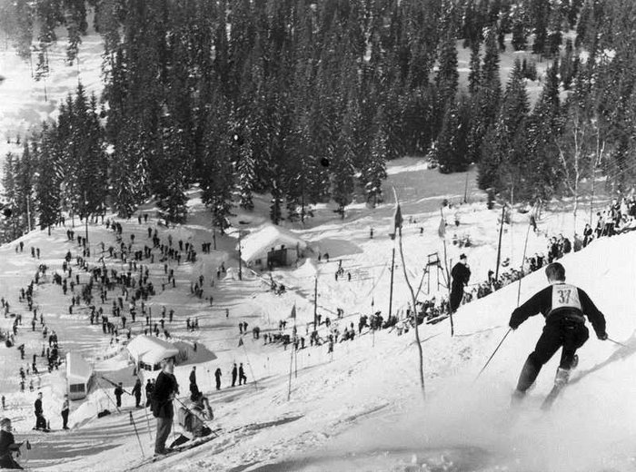 Stein Eriksen hittar en fin linje vid slalomtävlingen i vinter-OS i Oslo 1952. På den tiden var OS endast öppet för glada amatörer.
