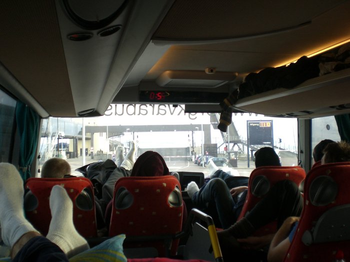 Vi satt där för att någon läst ett par avancerade lögner kring komforten i sovbussar och utbudet i den utlovade baren.