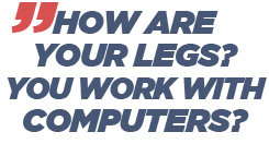 – How are your legs? You work with computers? (Gärna efter en lång vandring någonstans dit liftarna inte går)