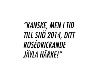 Kanske, men i tid till snö 2014, ditt rosédrickande jävla härke!