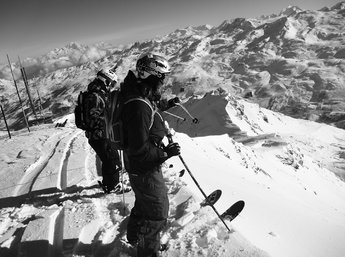 Jag skulle kunna välja att enbart resa till ställen där jag tar mig upp för bergen med egen kraft, vinka farväl till tillrättalagda, franska superskidområden och istället låta stighudarna föra mig ut i vildmarken. Men då ska jag lära mig tura, och ha råd att investera i alla de där stighudarna, turbindningarna och pjäxorna med gåläge som jag inte har. Och därifrån verkar steget till stegjärn och isyxor inte vara särskilt långt.